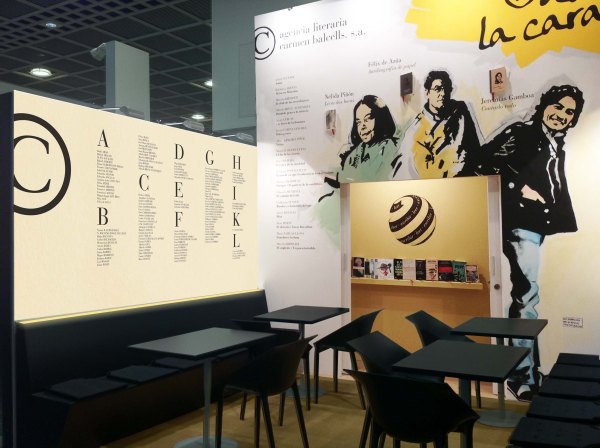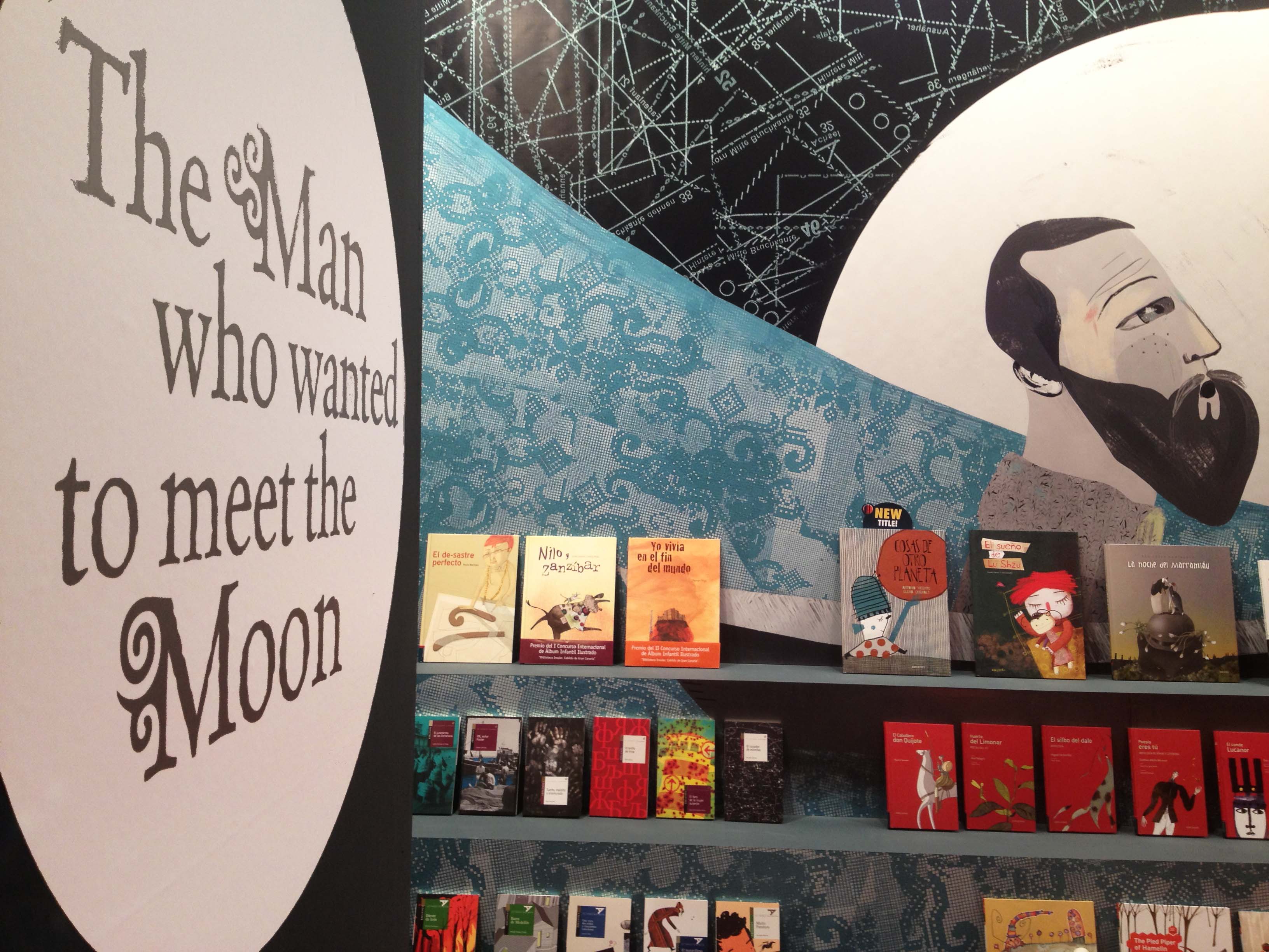 Ya que uno de los elementos más destacados del grupo editorial son sus ilustraciones, hemos querido focalizar la atención en este punto mediante una proyección de 8m x 5m en el techo del stand y un espacio diáfano donde poder trabajar y apreciar las ilustraciones cómodamente.