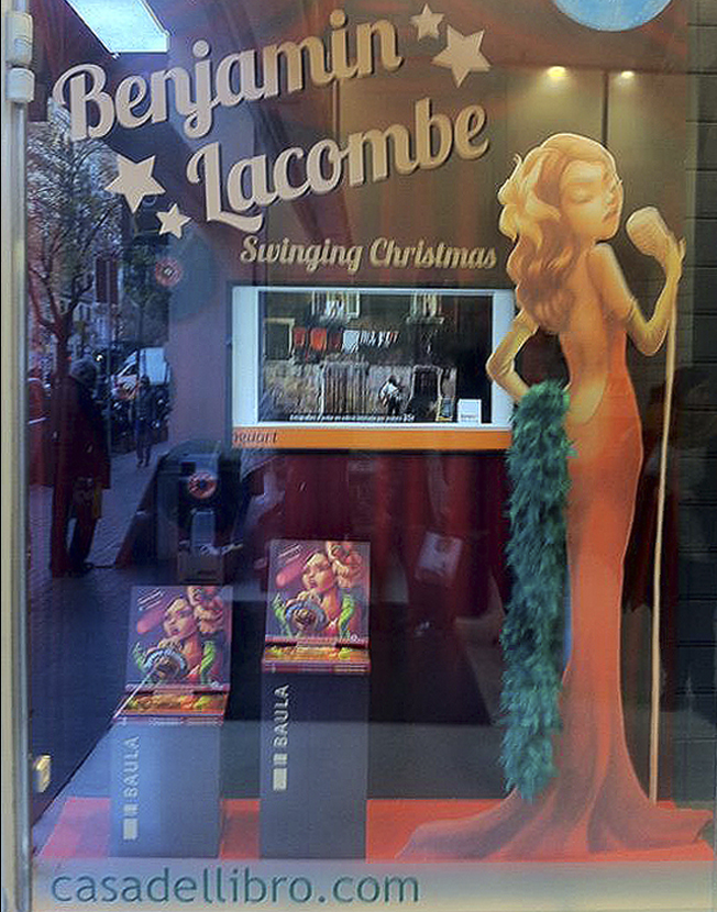 Diseñamos el escaparate de Casa del Libro (Barcelona & Valencia) presentando el nuevo libro ilustrado de Benjamin Lacombe para Edelvives, «Swninging Christmas».