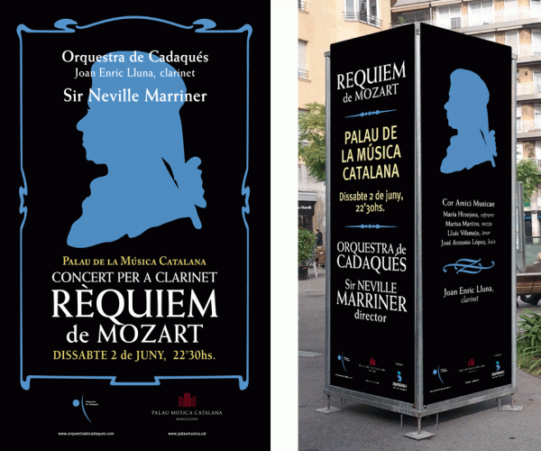 Mandaruixa ha realizado el concepto creativo y el diseño de la campaña de comunicación para el concierto del pasado 2 de junio en el Palau de la Música Catalana, con la Orquesta de Cadaqués y el maestro Sir Neville Marriner para presentar el Requiem de Mozart y el Concierto para clarinete y orquesta con Joan Enric Lluna como solista.