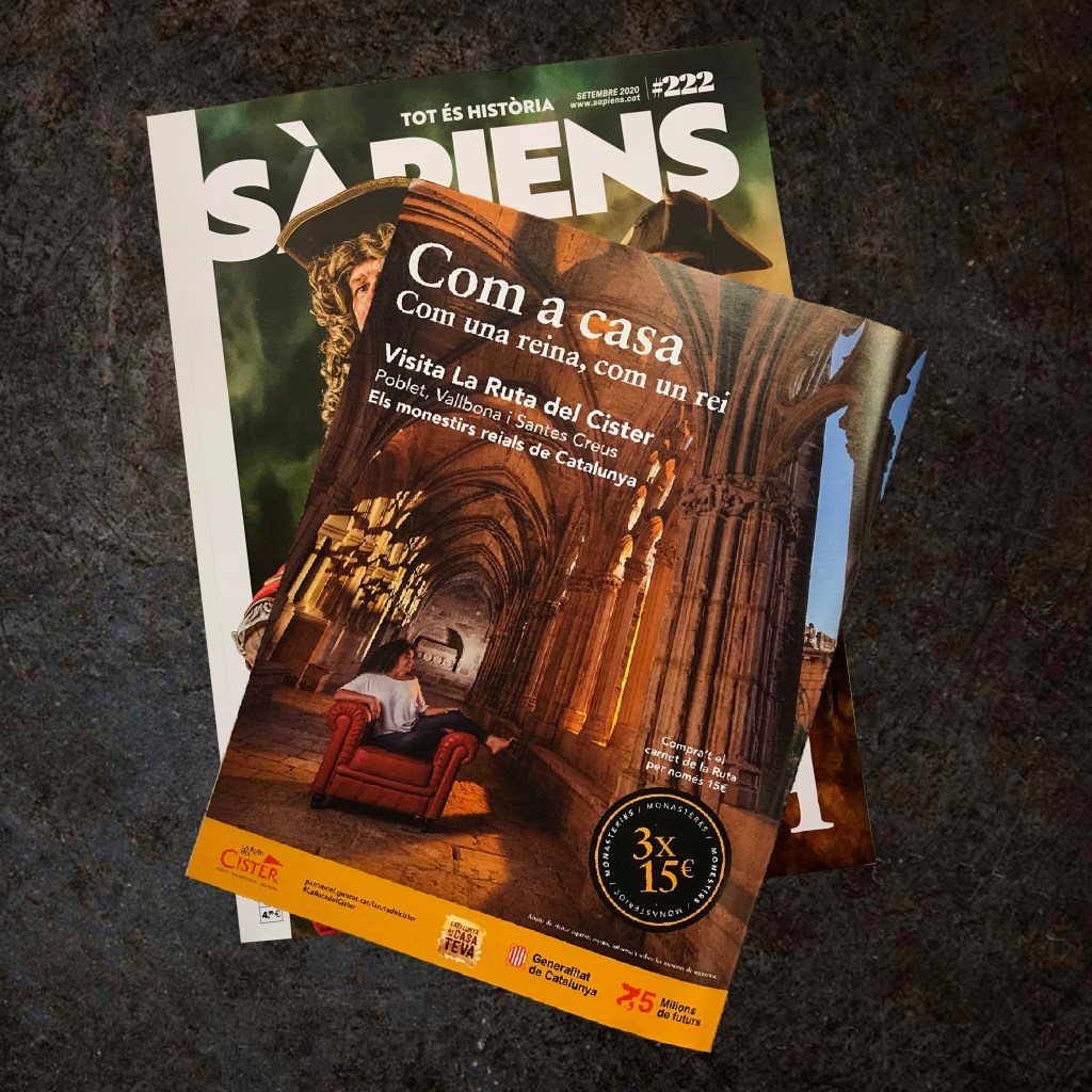 Dirección de arte y maquetación de la nueva campaña para la de la Ruta del Cister (Agència Catalana del Patrimoni Cultural) en colaboración con la agencia de comunicación Comunicant Bona Premsa y fotografía de David del Val. Publicado en la revista Sapiens y adaptación a redes sociales.