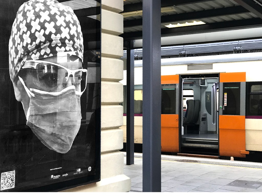 La campaña se desarrolla en dos planos, el físico y el digital. Hasta el momento, centenares de imágenes de rostros de profesionales sanitarios con mascarilla están siendo reproducidas, distribuidas y expuestas utilizando todos los apoyos disponibles de comunicación urbana que tienen las ciudades.