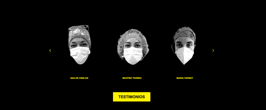 En esta web hay el repositorio de todas las imágenes que han sido cedidas a título individual, tratadas digitalmente e identificadas con el código QR. En el espacio de cada una de las imágenes aparece la imagen del individuo con mascarilla y sin, la frase o testimonio que él ha querido aportar, el centro sanitario donde trabaja y su cargo.